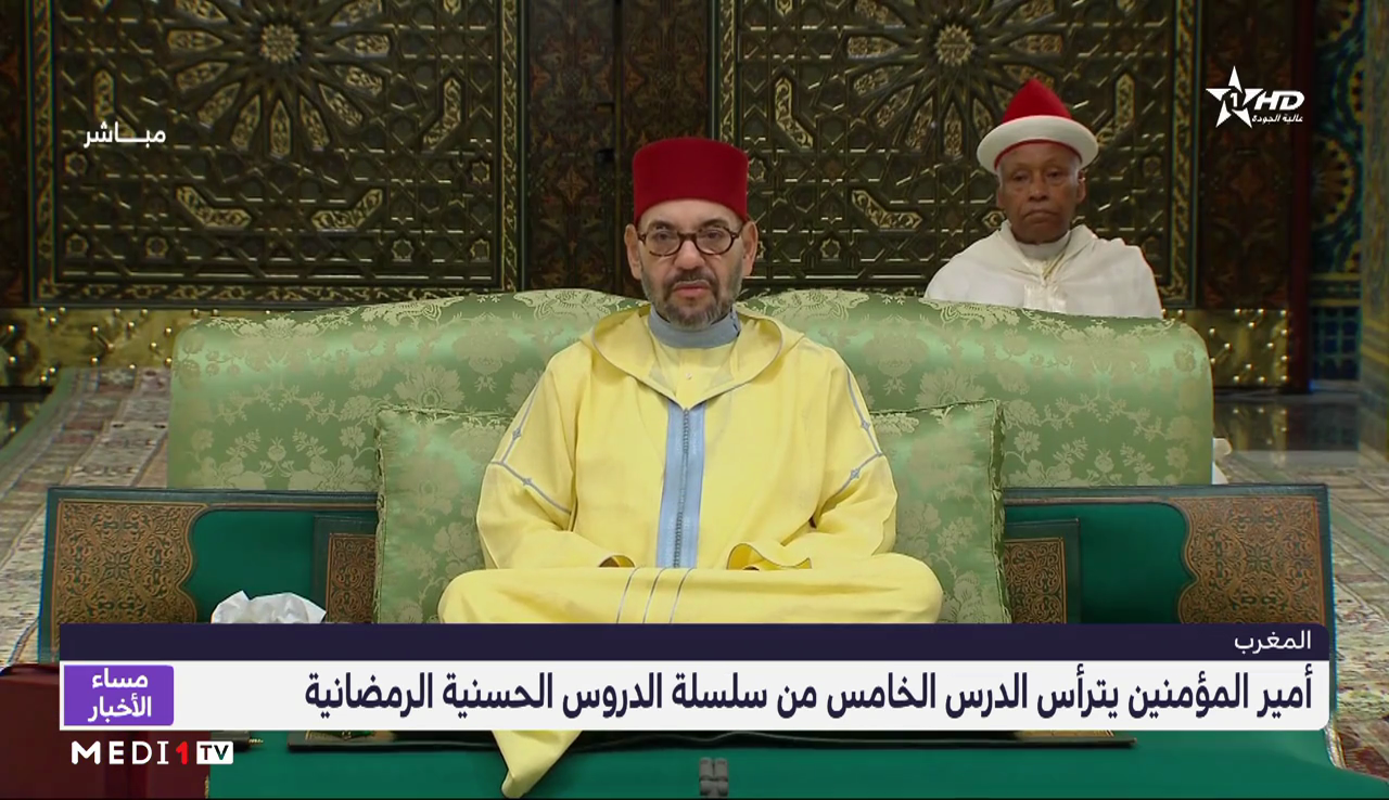 يترأس أمير المؤمنين الملك محمد السادس اليوم الأحد 25 رمضان الأبرك 1444هـ موافق 16 أبريل 2023م بالقصر الملكي العامر بمدينة الدار البيضاء، الدرس الخامس من سلسلة الدروس الحسنية الرمضانية.