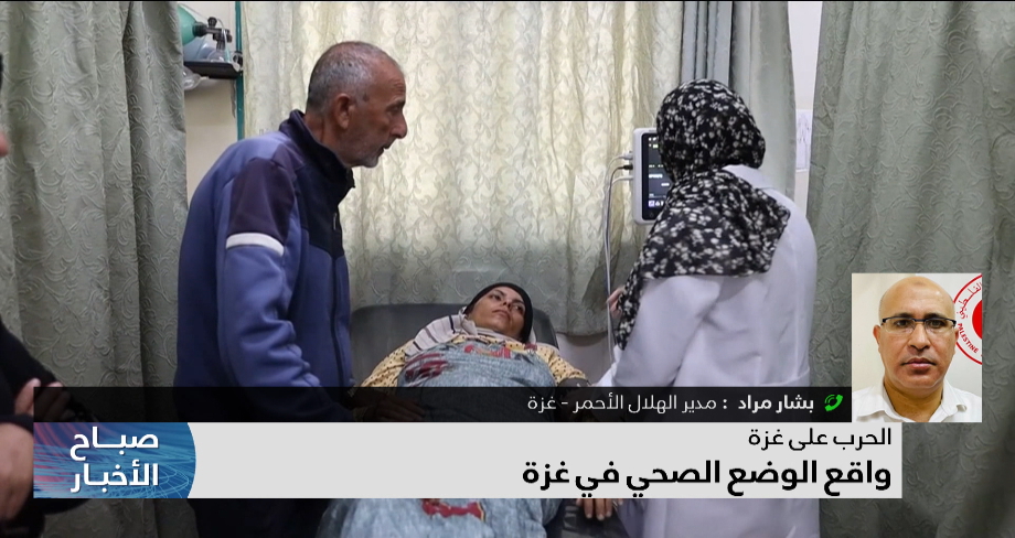 ما هي نسبة توقف الخدمات الصحية في غزة وما هي التحديات الرئيسية التي تواجه المستشفيات والمراكز الطبية حاليًا، والإجراءات التي تتخذها وزارة الصحة والمنظمات الإغاثية و الهلال الأحمر للتعامل مع النقص الحاد في الموارد الطبية والسريرية؟ وكيف يتم التعامل مع الحالات الطارئة والجرحى في ظل الضغط الشديد على غرف العمليات والطواقم الطبية؟ وما هو الدور الذي يمكن أن تلعبه المجتمعات الدولية والمنظمات الإنسانية في دعم القطاع الصحي في غزة؟و ما هي الخطوات التي يمكن اتخاذها لضمان استمرارية الرعاية الصحية وتحسين الوضع الصحي في المستقبل؟ توضيحات مدير الهلال الأحمر من غزة بشار مراد .