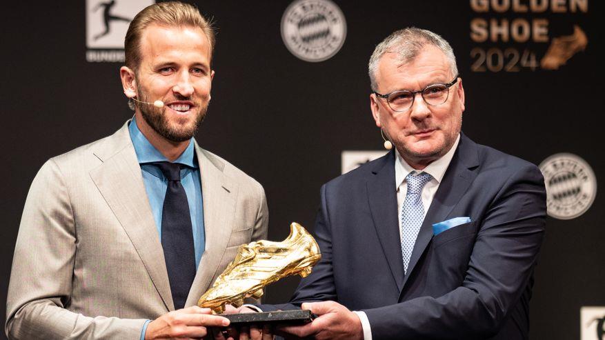 استلم مهاجم بايرن ميونيخ الإنكليزي هاري كاين جائزة الحذاء الذهبي التي تُمنح لأفضل هدّاف في دوري أوروبي لكرة القدم خلال حفل في بافاريا الثلاثاء.