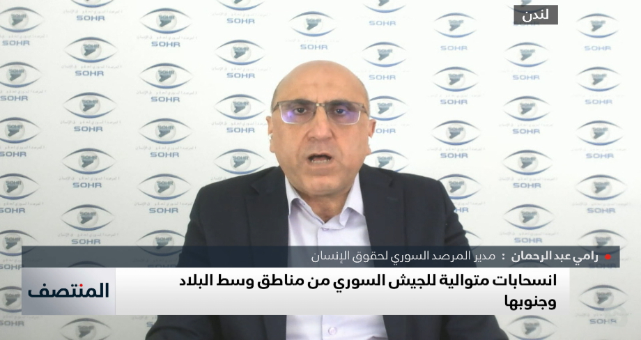 قال رئيس المرصد السوري لحقوق الإنسان رامي عبد الرحمان لقناة ميدي1 تيفي، إن الاوضاع في سوريا تتصاعد بوتيرة سريعة وتصدر معها تقارير عن اشتباكات عنيفة بين القوات النظامية و فصائل المعارضة في مناطق مختلفة من سوريا.