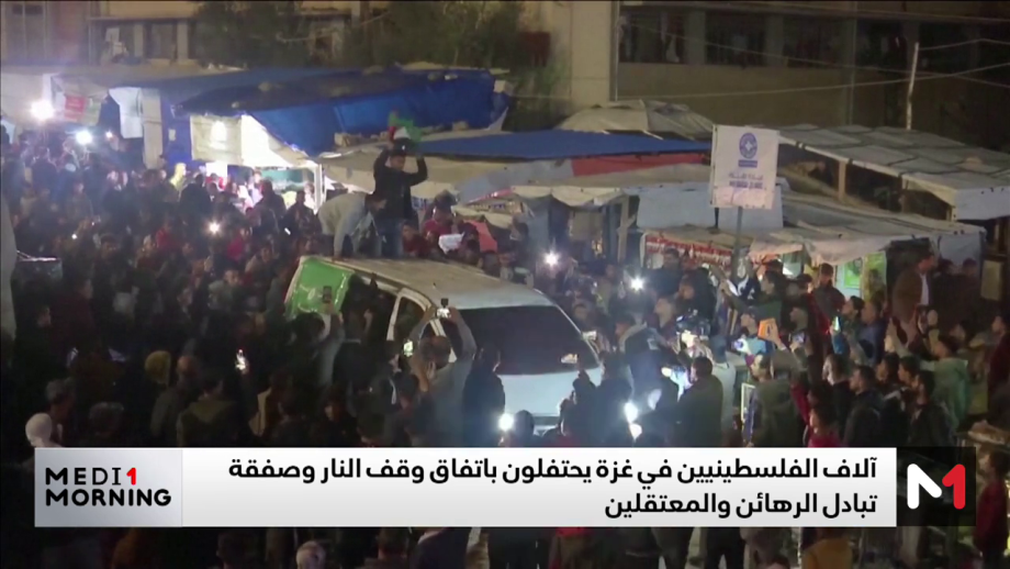 بإعلان التوصل لاتفاق وقف إطلاق النار وتبادل الرهائن والمعتقلين بين اسرائيل وحماس والذي يفترض أن يضع حدا للحرب الاسرائيلية المستمرة منذ أكثر من 15 شهرا، احتفل آلاف الفلسطينين في قطاع غزة.