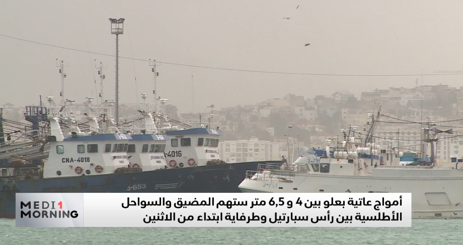 أفادت وزارة التجهيز والماء أن منطقة المضيق والسواحل الأطلسية بين رأس سبارتيل وطرفاية ستشهد أمواجا عاتية قادمة من اتجاه الغرب إلى الشمال الغربي،
