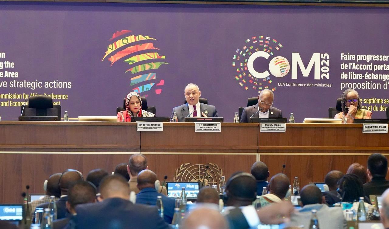 في كلمة بصفته رئيسا للدورة السابعة والخمسين للجنة الاقتصادية لإفريقيا ومؤتمر وزراء المالية والتخطيط والتنمية الاقتصادية الأفارقة في أديس أبابا، قال وزير الصناعة والتجارة المغربي رياض مزور، إن منطقة التجارة الحرة القارية الإفريقية هي أكثر من مجرد إطار قانوني ودعا المسؤول المغربي إلى اتخاذ خطوات جريئة من أجل تنفيذ أفضل لهذا الاتفاق في مناخ عالمي يعرف تحولات عميقة.