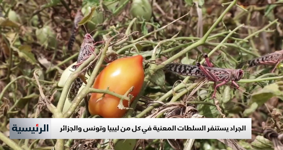 ظهرت أعداد هائلة من الجراد الصحراوي خلال الأيام الماضية في المناطق الجنوبية بكل من ليبيا و تونس والجزائر مما استدعى استنفار الأجهزية والسلطات المعنية سواء للرصد والتتبع أو حتى للشروع في عملية القضاء على الجراد.