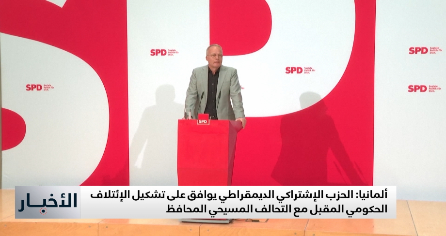 وافق أعضاء الحزب الإشتراكي الديمقراطي على إتفاق تشكيل الإئتلاف الحكومي المقبل مع التحالف المسيحي المحافظ. ويأتي ذلك بعد فوز غير مريح للحزب المحافظ في تشريعيات شهر فبراير الماضي.. فيما كان الخزب الاشتراكي الديمقراطي قد مني بخسارة تاريخية ,,,, تحالف يرى مراقبون أنه يهدف بشكل أساسي لقطع الطريق على أقصى اليمين، تقرير ملك مهراج