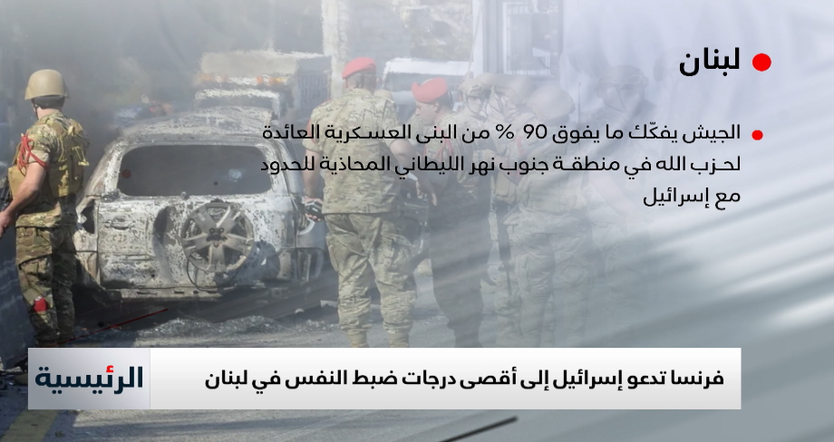 يأتي هذا في الوقت الذي فكّك فيه الجيشُ اللبنانيُّ "ما يفوق 90 في المئة" من بنية حزب الله العسكرية في مَنطقةِ جنوب نهر الليطاني المحاذية للحدود مع إسرائيل منذ سَرَيان وقف إطلاق النار.