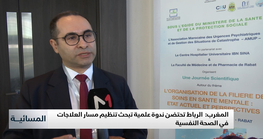 نُظمت اليوم بالرباط ندوة علمية تحت شعار "تنظيم مسار العلاجات في الصحة النفسية: الوضع الحالي والآفاق"، بشراكة بين الجمعية المغربية لطب المستعجلات النفسية وتدبير الكوارث، والمركز الاستشفائي الجامعي ابن سينا، وكلية الطب والصيدلة بالرباط، وتحت إشراف وزارة الصحة والحماية الاجتماعية.