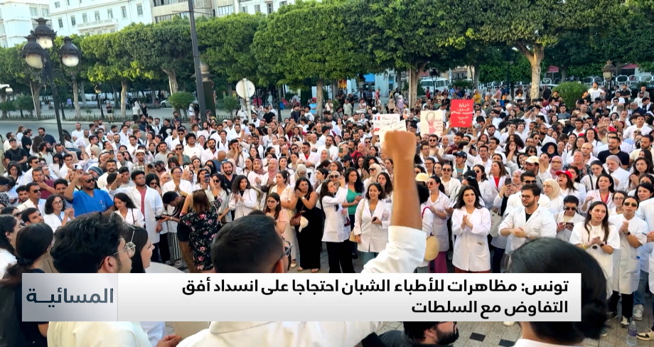تظاهر أطباء شبان في تونس بكثافة ضد انسداد أفق التفاوض مع السلطات بعد ثلاثة اشهر من إشكال احتجاجية متواصلة اخرها الانسحاب من كافة المستشفيات العمومية الثلاثاء.
