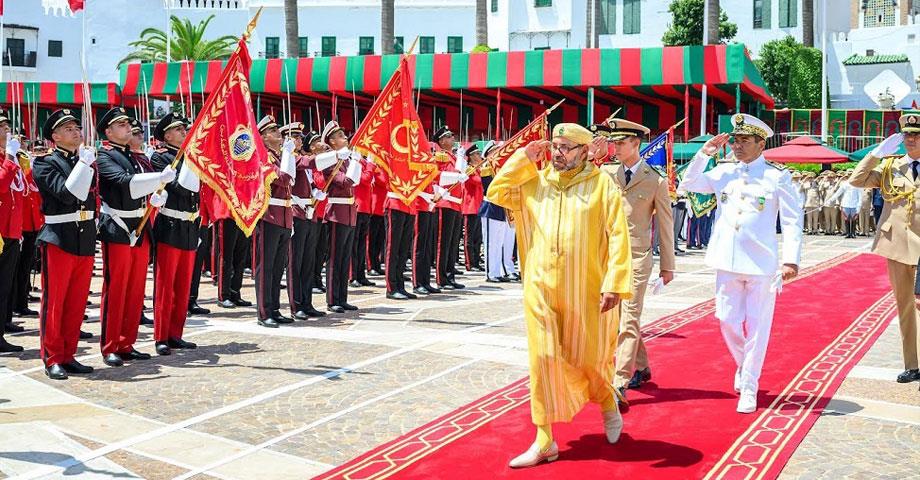 ترأس صاحب الجلالة الملك محمد السادس، القائد الأعلى ورئيس أركان الحرب العامة للقوات المسلحة الملكية، نصره الله، مرفوقا بصاحب السمو الملكي ولي العهد الأمير مولاي الحسن وصاحب السمو الملكي الأمير مولاي رشيد، بعد ظهر اليوم الخميس، بساحة المشور بالقصر الملكي بتطوان، حفل مراسم أداء القسم من طرف الضباط المتخرجين من مختلف المدارس والمعاهد العسكرية وشبه العسكرية وكذا ضباط الصف الذين تمت ترقيتهم إلى رتبة ضابط، وذلك بمناسبة الاحتفال بالذكرى الـ 26 لتربع صاحب الجلالة على عرش أسلافه المنعمين.