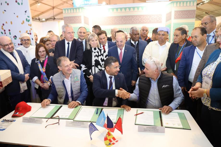 أما الاتفاقية الثانية، فقد تم توقيعها بين الغرفة الفلاحية لجهة الرباط-سلا-القنيطرة، والغرفة الفلاحية لجهة أوفيرن-رون ألب، والغرفة الفلاحية لإيزير، وتركز على النهوض بالسلاسل الفلاحية والتدبير المستدام للموارد الطبيعية، في إطار تبادل الخبرات وتطوير مشاريع فلاحية مبتكرة بشكل مشترك.