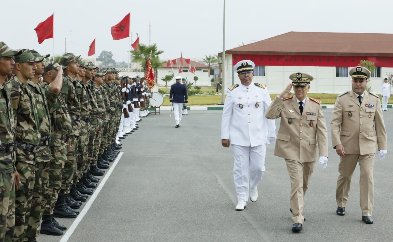 وبعد مراسم تحية العلم، أكد اللواء رشيد الزمزومي، رئيس مكتب التجنيد للقيادة العليا للقوات المسلحة الملكية، في كلمة بالمناسبة، أنه تنفيذا للتعليمات السامية لصاحب الجلالة الملك القائد الأعلى ورئيس أركان الحرب العامة للقوات المسلحة الملكية، تواصل القوات المسلحة الملكية تنفيذ البرنامج الوطني للخدمة العسكرية، حرصا على صون مكتسباته وتعزيز أثره وترسيخ إشعاعه.