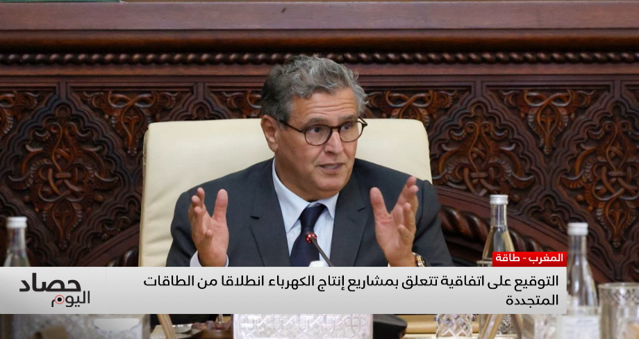 ترأس رئيس الحكومة عزيز أخنوش، الإثنين مراسم التوقيع على اتفاقية تجمع الحكومة والمكتب الوطني للكهرباء والماء الصالح للشرب، والوكالة المغربية للطاقة المستدامة "مازن"، والوكالة الوطنية للتدبير الاستراتيجي لمساهمات الدولة وتتبع نجاعة أداء المؤسسات والمقاولات العمومية.