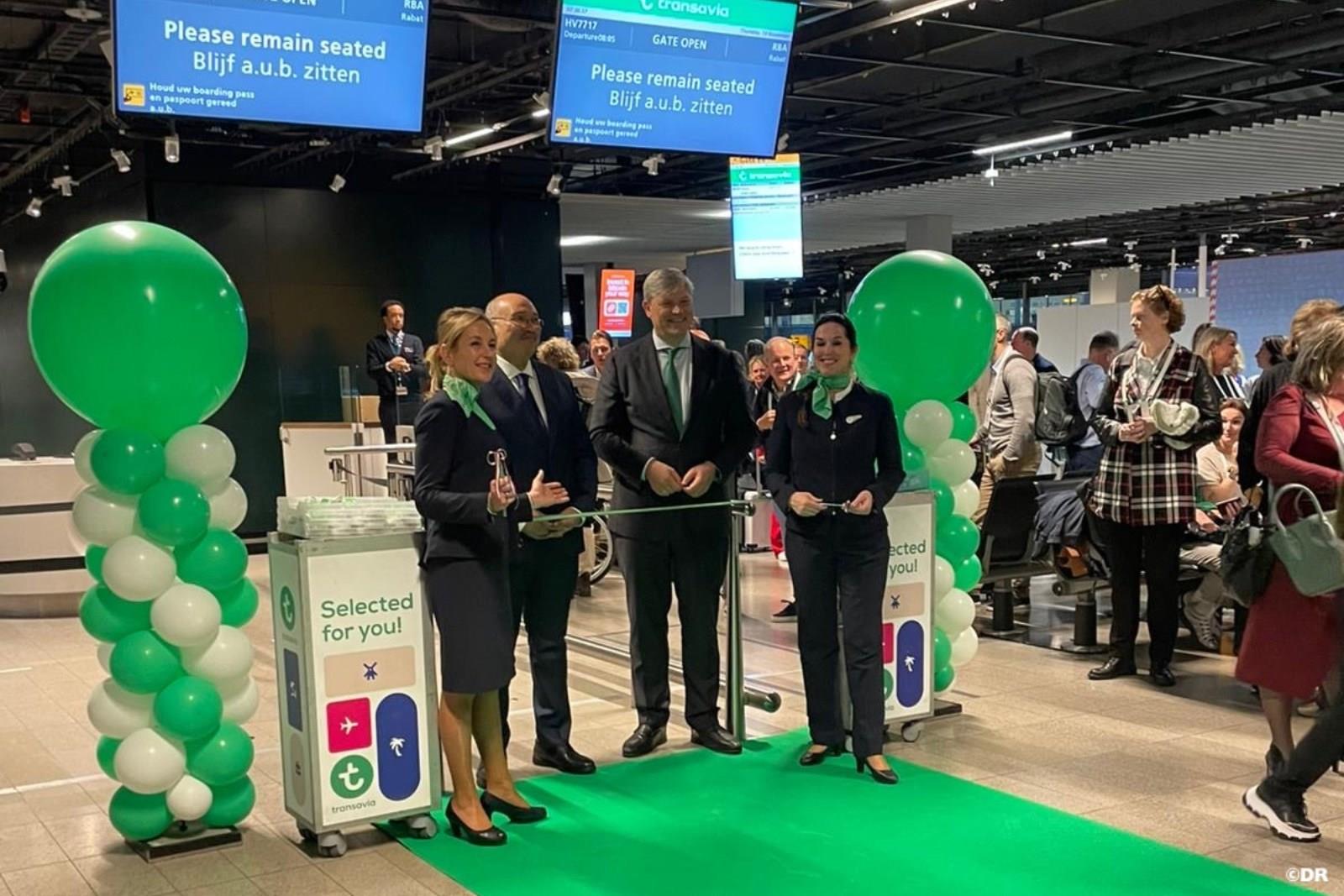 وجرت مراسم تدشين هذا الخط الجديد بمطار سخيبول بأمستردام، بحضور سفير المملكة في هولندا، محمد البصري، والرئيس المدير العام لشركة "ترانسافيا"، مارسيل دي نوييير.