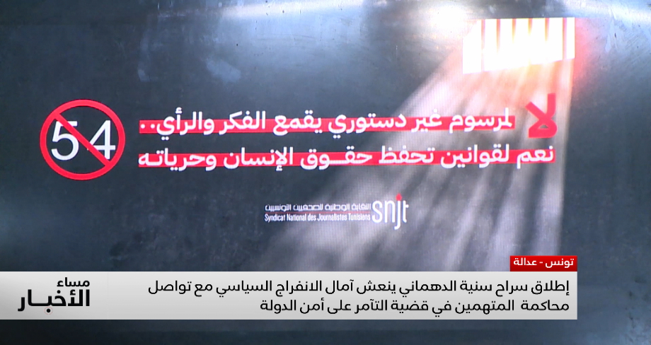 في تونس أطلقت السلطات سراح المحامية والإعلامية، سنية الدهماني، بعد عام ونصف من حبسِها على خلفية تصريحٍ منتقِدٍ للسلطة.