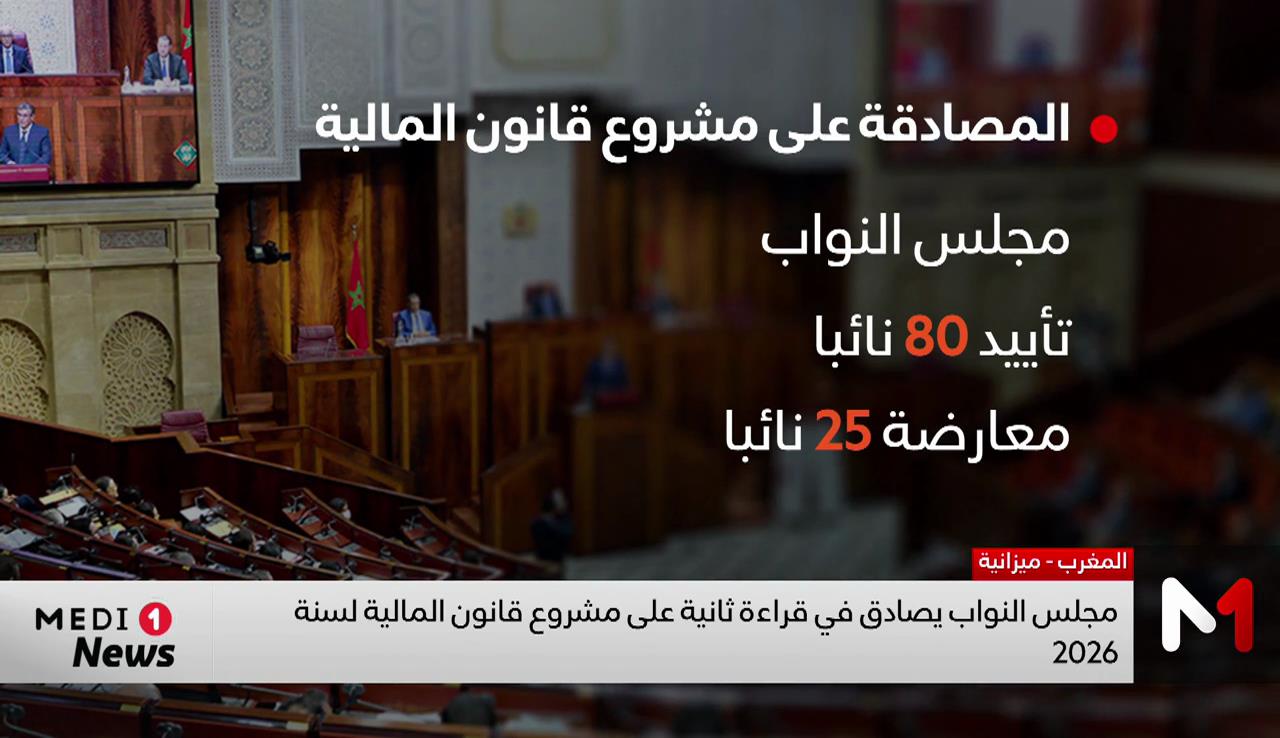 صادق مجلس النواب، خلال جلسة عمومية عقدها اليوم بالأغلبية على مشروع قانون المالية رقم 50.25 برسم سنة 2026، وذلك في إطار قراءة ثانية.