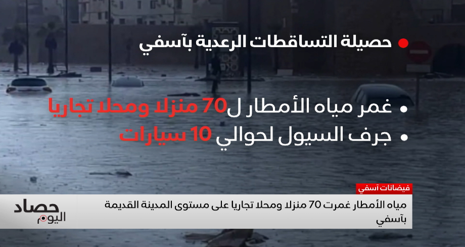 أفادت السلطات المحلية بإقليم آسفي، بأنه وفي حصيلة محينة للخسائر البشرية الناجمة عن التساقطات الرعدية القوية التي عرفها الإقليم مساء اليوم الأحد، وما نتج عنها من تدفقات فيضانية استثنائية خلال فترة زمنية وجيزة، تم، إلى حدود هذه اللحظة، تسجيل ارتفاع حصيلة الوفيات إلى أربع عشرة (14) حالة وفاة.