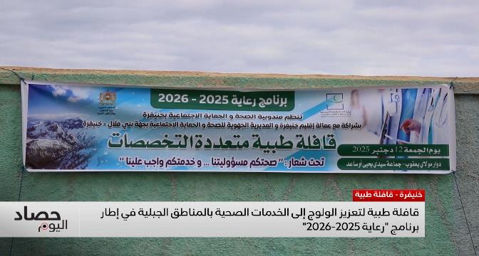 نظمت مندوبية وزارة الصحة والحماية الاجتماعية بإقليم خنيفرة، الجمعة بمنطقة مولاي يعقوب بجماعة سيدي يحيى أوساعد، قافلة طبية متعددة التخصصات في إطار برنامج "رعاية 2025-2026" وذلك تنفيذا للتعليمات السامية لصاحب الجلالة الملك محمد السادس، الرامية إلى دعم ولوج الساكنة بالمناطق الجبلية والنائية إلى الخدمات الصحية.