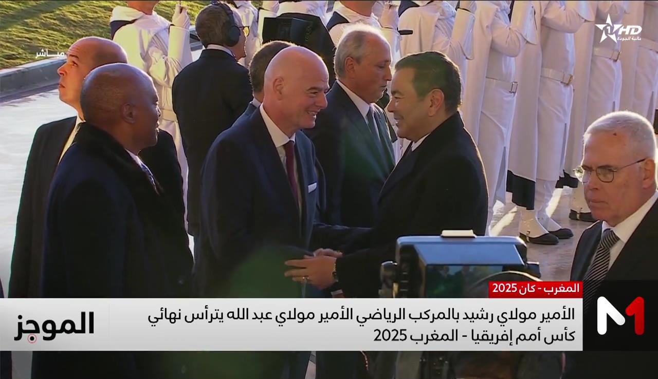الأمير مولاي رشيد بالمركب الرياضي الأمير مولاي عبد الله لترأس نهائي كان المغرب 2025 الأحد 18 يناير 2026 - 19:16 وصل الأمير مولاي رشيد للمركب الرياضي الأمير مولاي عبد الله، لترأس نهائي كأس أمم إفريقيا المغرب 2025. Medi1News.com