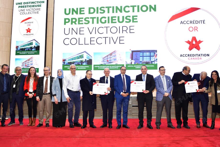 جرى، بالدار البيضاء، تنظيم حفل بمناسبة حصول المستشفى الجامعي الدولي محمد السادس ببوسكورة، والمركز الجامعي للطب النفسي الأوكالبتوس، والمستشفى الجامعي الدولي الشيخ خليفة، التابعين لمؤسسة محمد السادس للعلوم والصحة (FM6SS)، على الاعتماد الدولي الكندي - المستوى الذهبي.