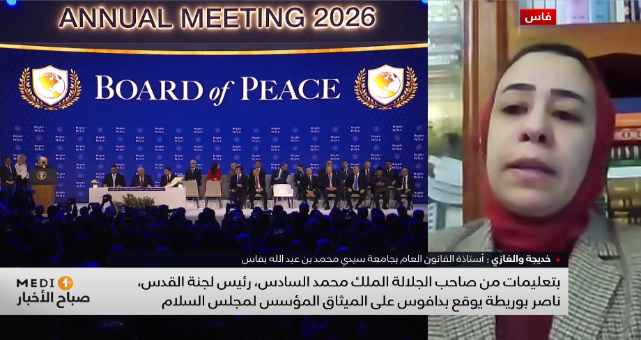 بتعليمات من جلالة الملك محمد السادس رئيس لجنة القدس، وقع وزير الشؤون الخارجية والتعاون الإفريقي والمغاربة المقيمين بالخارج ناصر بوريطة، بدافوس سويسرا، على الميثاق المؤسس لمجلس السلام، خلال حفل ترأسه الرئيس الأمريكي دونالد ترامب.