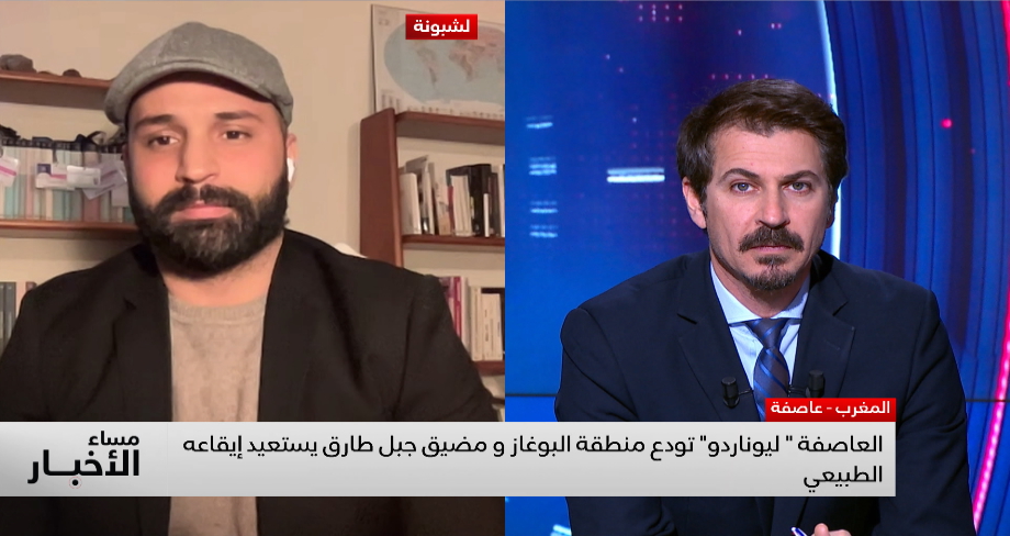 المغرب وعدة بلدان متوسطية على موعد مع العاصفة "مارتا" خلال الأيام المقبلة .. قراءة خليل البقالي الجمعة 6 فبراير 2026 - 20:53 العاصفة " ليوناردو" تودع منطقة البوغاز ومضيق جبل طارق يستعيد إيقاعه الطبيعي .. قراءة الخبير في المناخ، خليل الشريف البقالي.