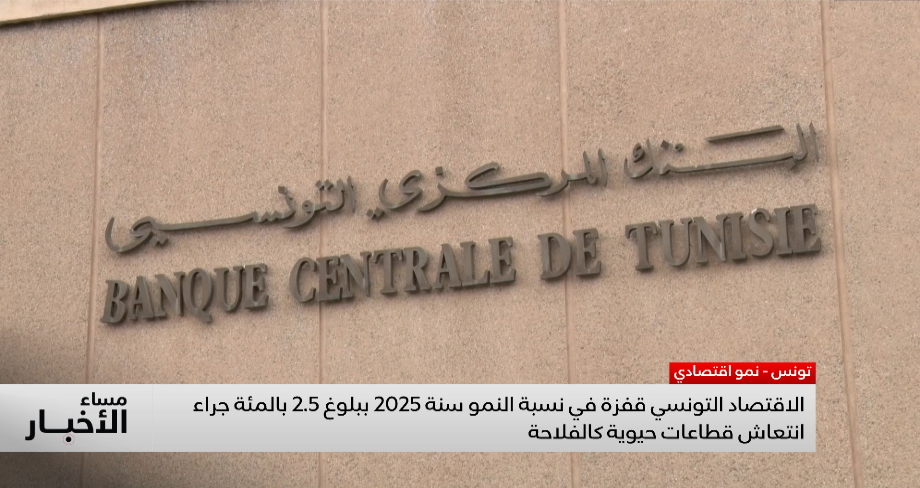 حقق الاقتصاد التونسي قفزة في نسبة النمو سنة الفين وخمس وعشرين ببلوغ اثنين فاصل خمسة بالمئة جراءَ انتعاشِ قطاعات حيوية كالفلاحة.
