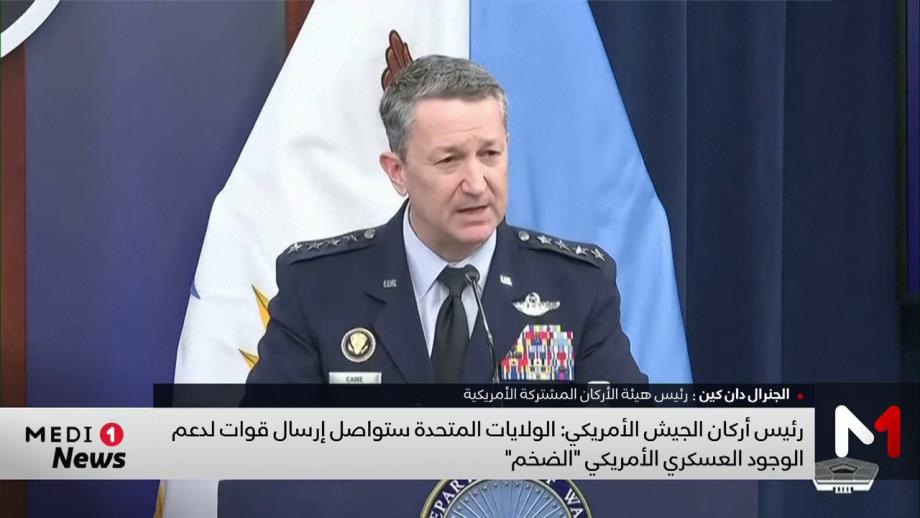 قال رئيس الأركان الأمريكي دان كين إن الولايات المتحدة ستواصل إرسال قوات لدعم الوجود العسكري الأمريكي في المنطقة والذي وصفه بالضخم.