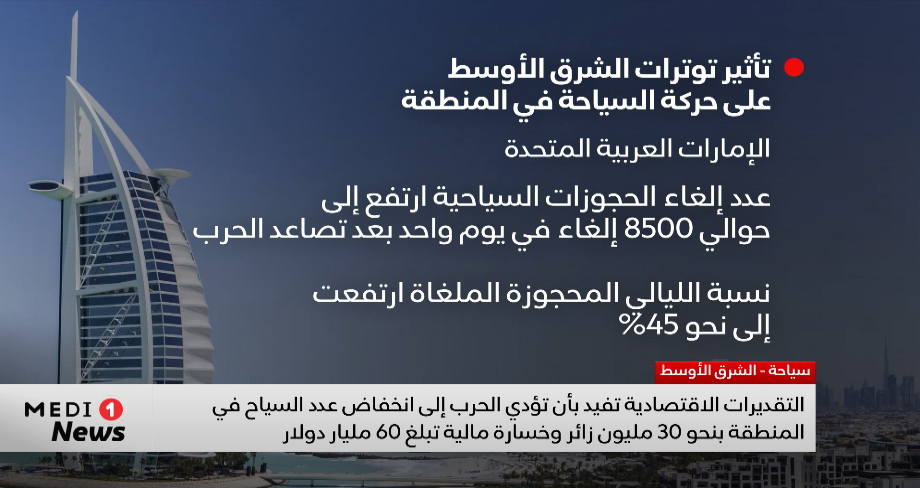 أدت الحرب الأمريكية الإسرائيلية ضد طهران، والهجمات الإيرانية التي طالت عددا من الدول، إلى شلل في حركة السياحة بالمنطقة.