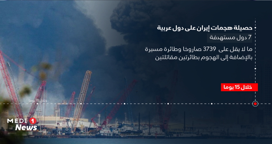 استهدفت إيران 7 دول عربية أغلبها خليجية، بما لا يقل عن 3 آلاف و739 صاروخا وطائرة مسيرة، بالإضافة إلى الهجوم بطائرتين مقاتلتين، خلال 15 يوما، ضمن ما اعتبرته ردا على الضربات الأمريكية الإسرائيلية ضدها.