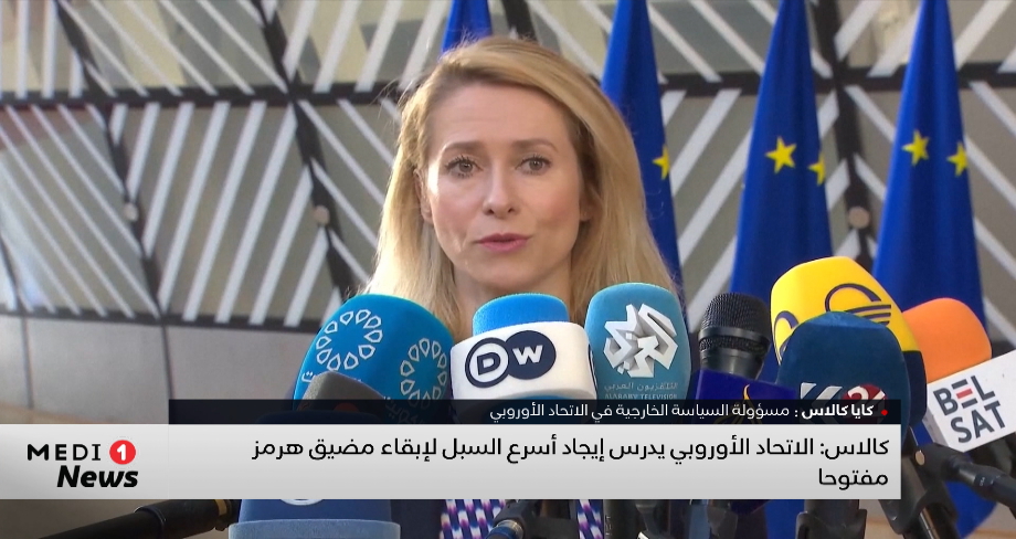 كالاس قالت إنه "من مصلحة التكتل إبقاءَ مضيق هرمز مفتوحا، مشيرة إلى أنه من الخيارات المطروحة تغييرُ تفويض "عملية اسبيدس"، وهي مهمة الاتحاد الأوروبي في البحر الأحمر مؤكدة أن ذلك سيكون "أسرع" سبيل أمام دول التكتل السبعة و العشرين لتعزيز الأمن في مضيق هرمز.