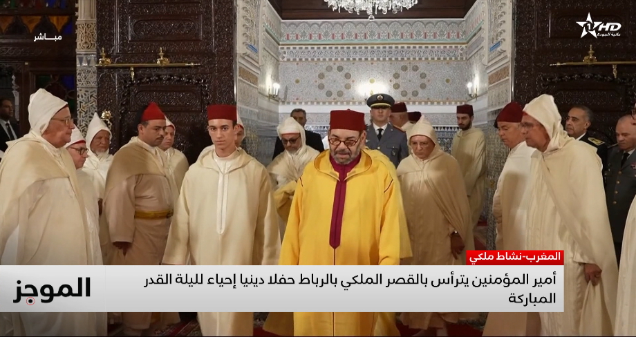 ترأس أمير المؤمنين صاحب الجلالة الملك محمد السادس، مرفوقا بصاحب السمو الملكي ولي العهد الأمير مولاي الحسن، وصاحب السمو الملكي الأمير مولاي رشيد، وصاحب السمو الأمير مولاي أحمد، مساء اليوم الإثنين حفلا دينيا إحياء لليلة القدر المباركة.