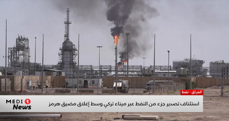 استئناف تصدير جزء من النفط عبر ميناء تركي وسط إغلاق مضيق هرمز أعلن العراق استئناف جزء من صادراته النفطية المتوقفة حاليا بسبب إغلاق مضيق هرمز على وقع الحرب المستمرة في الشرق الأوسط، بما يصل إلى 250 ألف برميل يوميا عبر ميناء جيهان التركي، وذلك بعد التوصل لاتفاق مع سلطات إقليم كردستان.