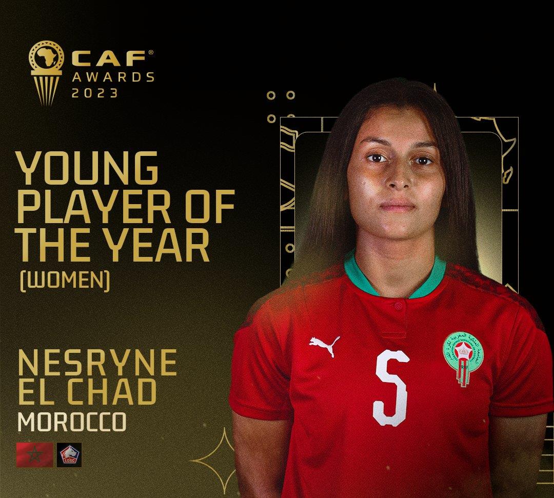 La joueuse de l'équipe nationale du Maroc et du LOSC Lille, Nesryne El Chad, a remporté le prix de meilleure jeune joueuse africaine de l'année, lors de la cérémonie des CAF Awards 2023, organisée lundi soir au Palais des Congrès de Marrakech.