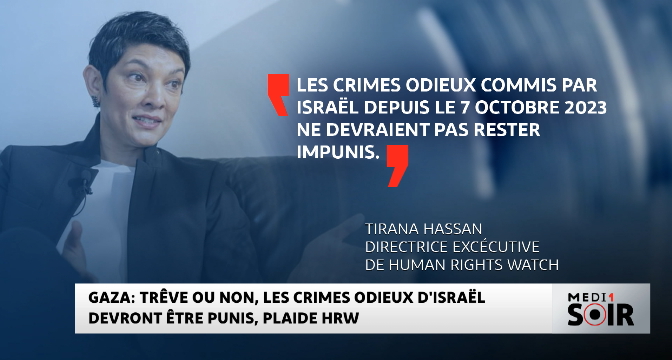 À l'approche de l'annonce imminente d'un accord pour un cessez-le-feu à Gaza, Tirana Hassan, directrice de l'organisation Human Rights Watch, a insisté jeudi sur le fait que les "crimes odieux" commis par Israël "ne devraient pas rester impunis."