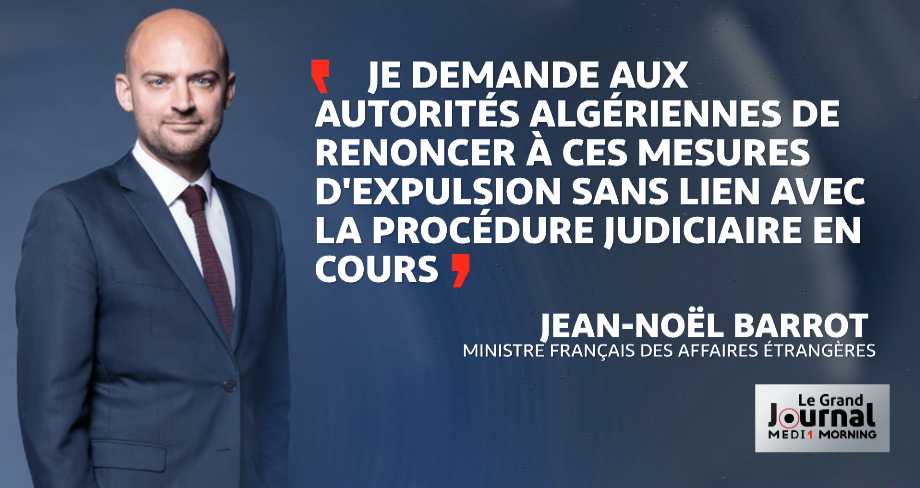 "Je demande aux autorités algériennes de renoncer à ces mesures d'expulsion sans lien avec la procédure judiciaire en cours", a dit Jean-Noël Barrot dans une déclaration écrite transmise à des journalistes.