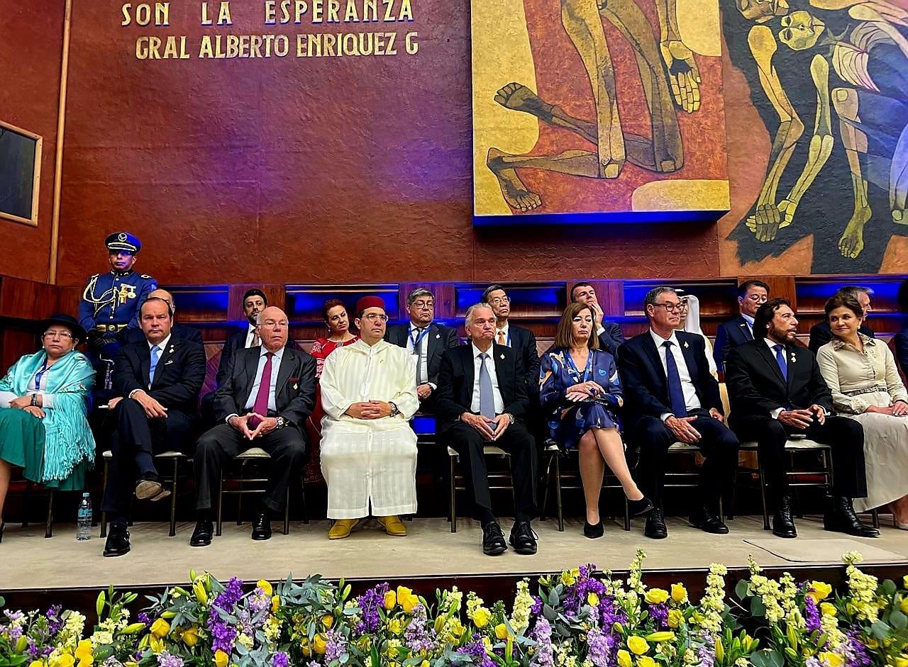 Le ministre des Affaires étrangères, de la Coopération africaine et des Marocains résidant à l’étranger, M. Nasser Bourita, a représenté Sa Majesté le Roi Mohammed VI, que Dieu L’assiste, à la cérémonie d’investiture du Président de la République d’Équateur, SEM. Daniel Noboa, qui a eu lieu samedi à Quito.