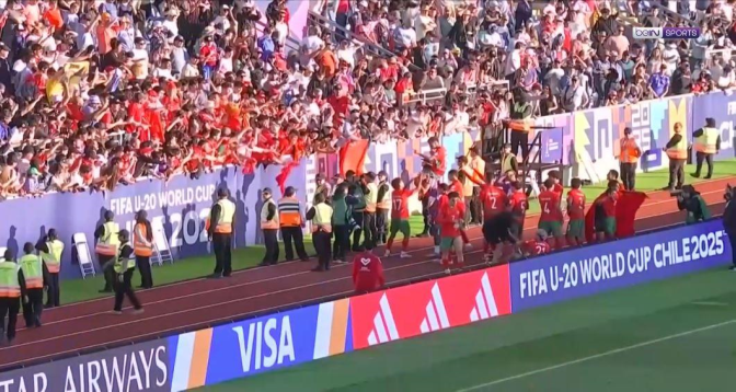 🎉 شاهد فرحة اللاعبين وجماهير المغرب بعد صافرة نهاية المباراة والصعود التاريخي إلى نصف نهائي كأس العالم تحت 20 سنة! 🇲🇦🔥#كأس_العالم_تحت_20_سنة | #أمريكا | #المغرب#U20WC | #USAU20 | #MoroccoU20 pic.twitter.com/Ex6EK5MjrX