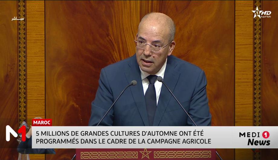 "5 millions de grandes cultures d'automne ont été programmés dans le cadre de la campagne agricole 2025-2026", a déclaré le ministre de l'Agriculture, Ahmed El Bouari. Sur ces 5 millions, 4,4 millions d'hectares sont consacrés aux principales céréales.