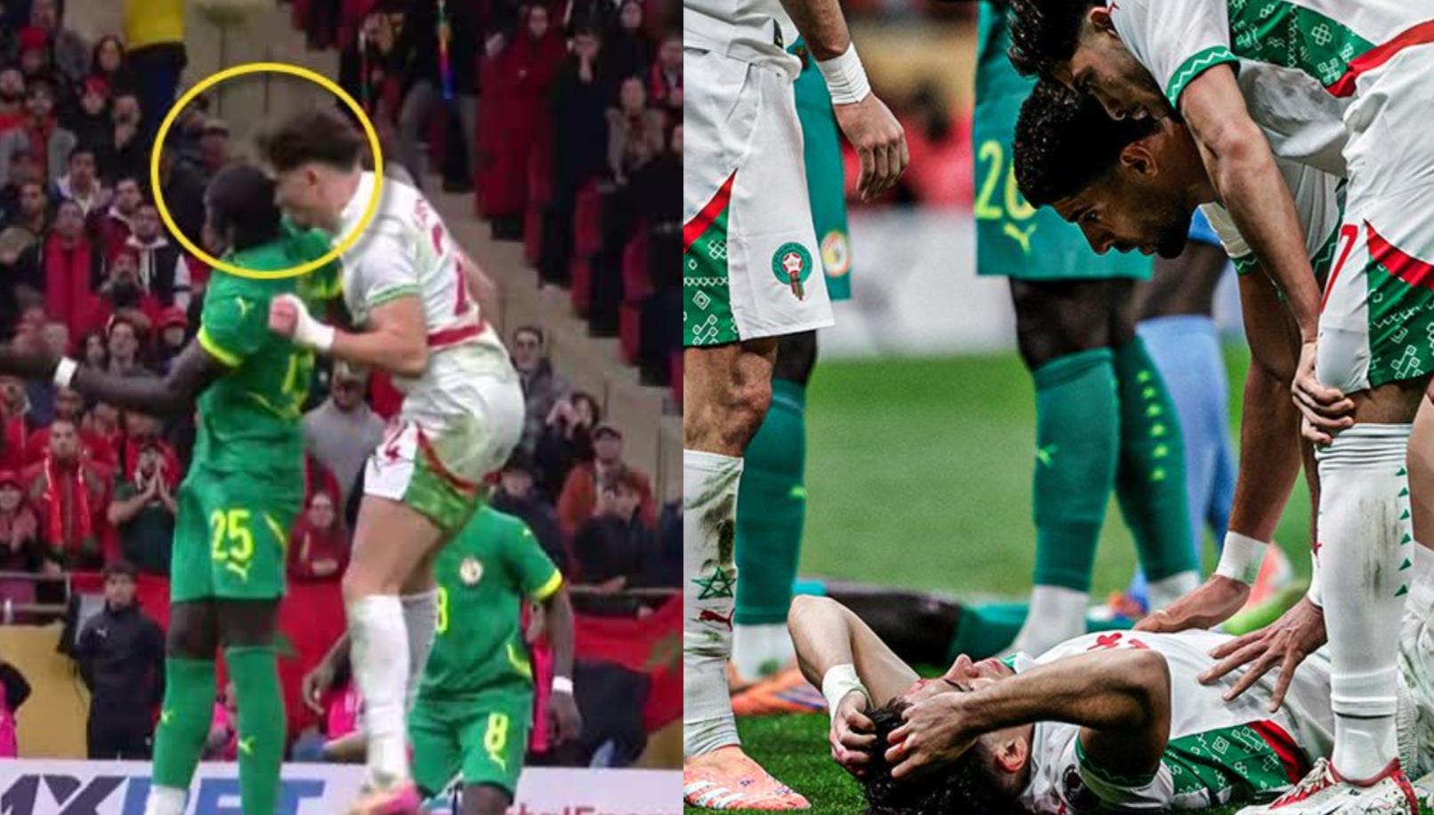 Au retour des vestiaires, Neil El Aynaoui et Malick Diouf se sont heurtés tête contre tête sur un corner lors de la finale Maroc-Sénégal de la CAN 2025.