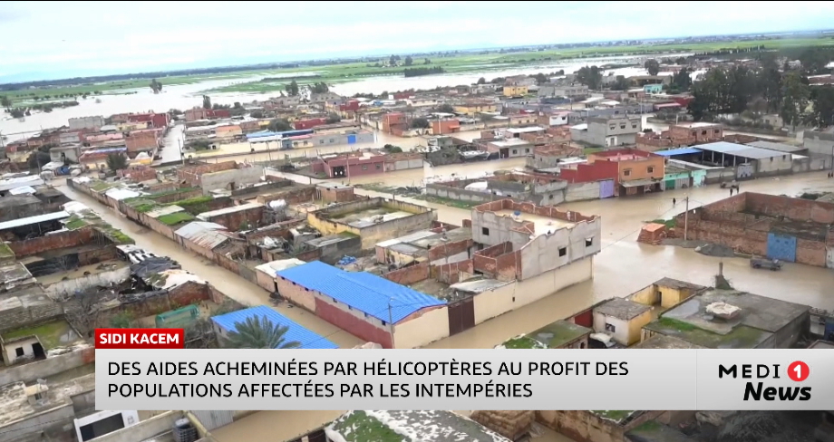 Les opérations de soutien se poursuivent au profit des populations affectées par la montée des eaux. Un hélicoptère a notamment été déployé à Sidi Kacem pour acheminer des aides humanitaires au profit des habitants.
