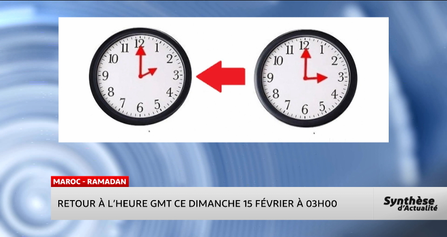 A l’occasion du mois sacré de Ramadan, le Maroc repassera à l’heure GMT ce dimanche 15 février à 03h du matin. C'est ce qu'a indiqué un communiqué du ministère de la Transition numérique et de la Réforme de l’administration.