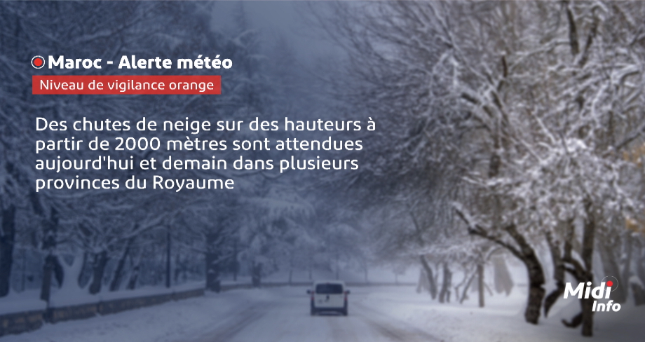 Des chutes de neige sur des hauteurs à partir de 2000 mètres concernent jusqu'à mercredi plusieurs provinces du Maroc.